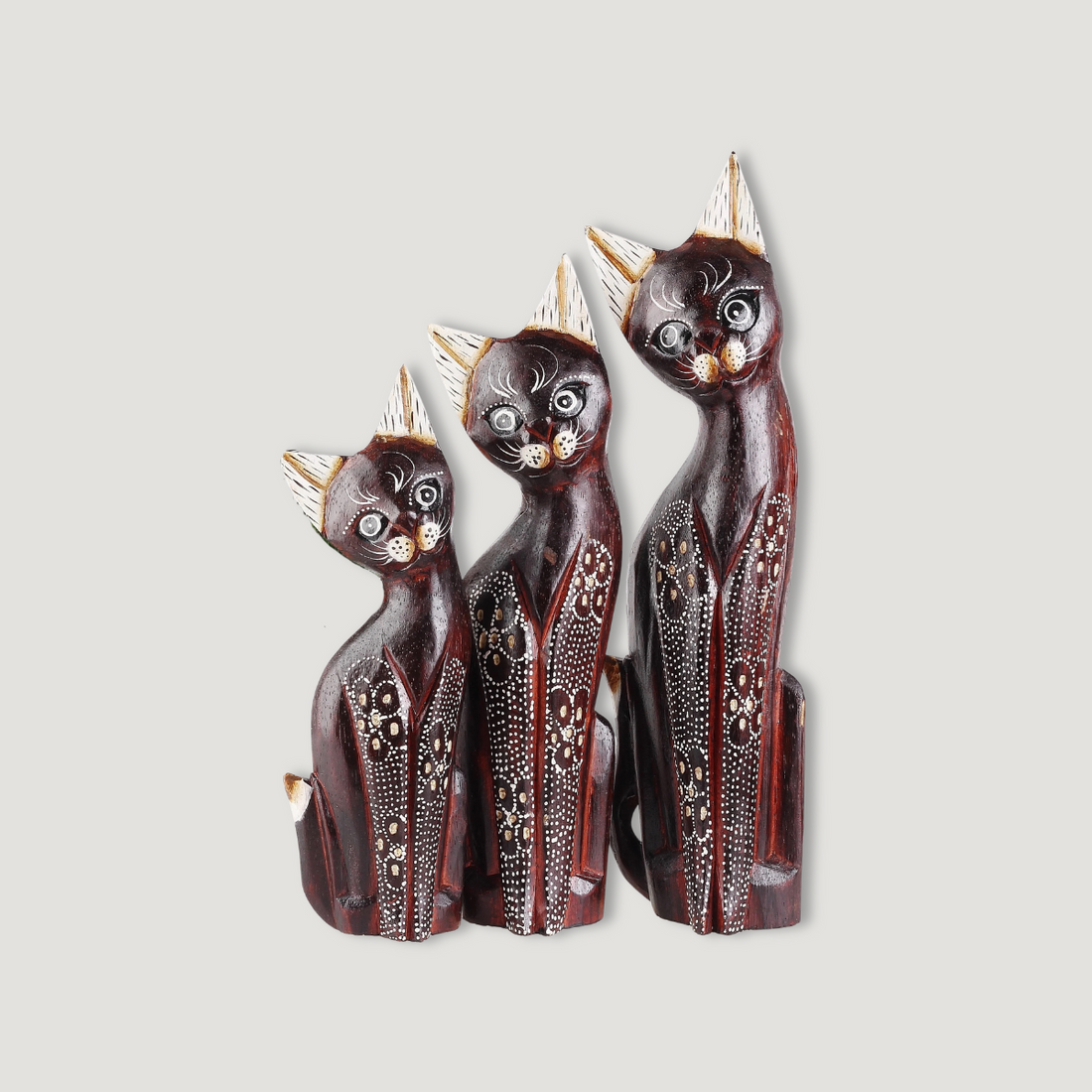 Umělec nezapomněl na jediný detail, když pracoval na těchto dřevěným sochách. Sošky kočiček z palmového...