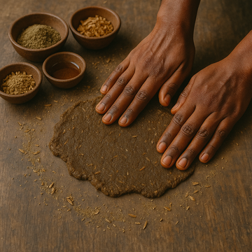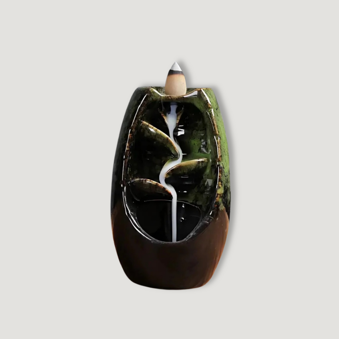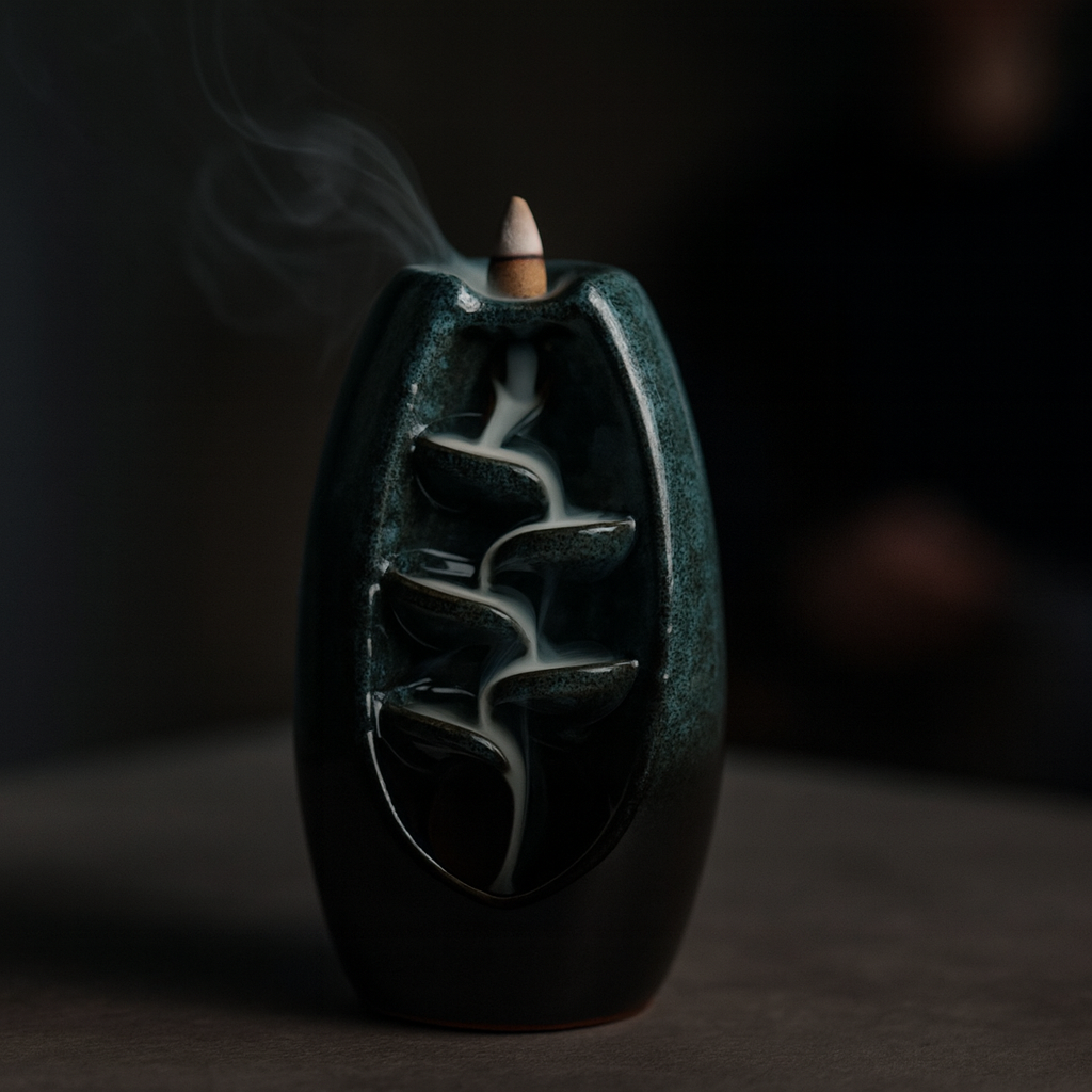 Tekoucí dým vzniká z přírodních směsí dřevin, bylin a vonných pryskyřic, které se tvarují do malých kuželů. Každý je ručně formován tak, aby při hoření uvolňoval hustý, těžší kouř, který se pomalu vine směrem dolů. Tento jemný vizuální efekt spojuje vůni s pohybem, vytváří klidnou atmosféru a připomíná pradávné rituály, v nichž byl kouř vnímán jako prostředek očisty a ztišení.