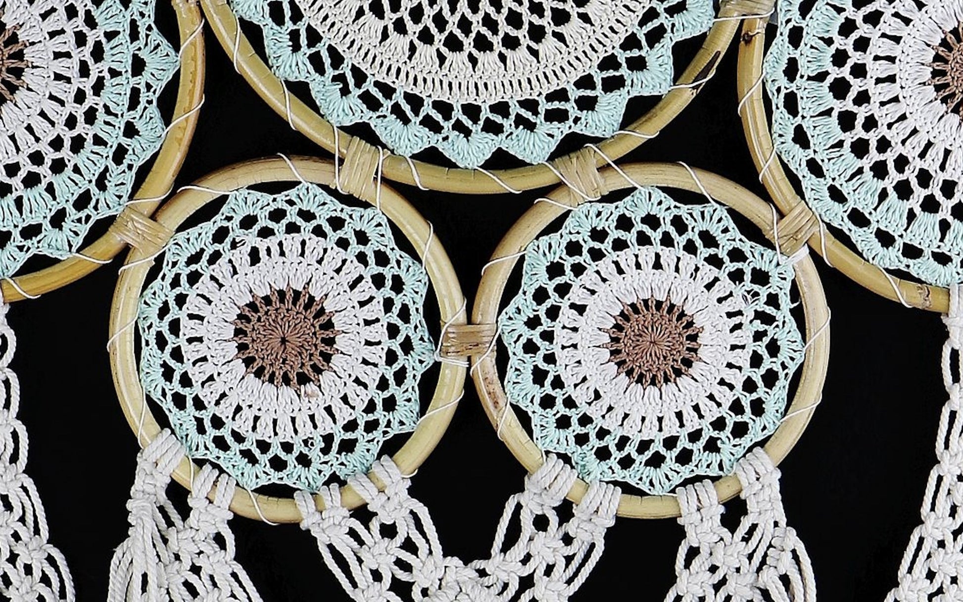 Ručně vyrobený lapač snů. Lapač snů se hodí do interiéru i exteriéru, ale není odolný vůči povětrnostním vlivům a vodě.