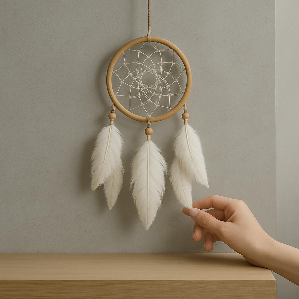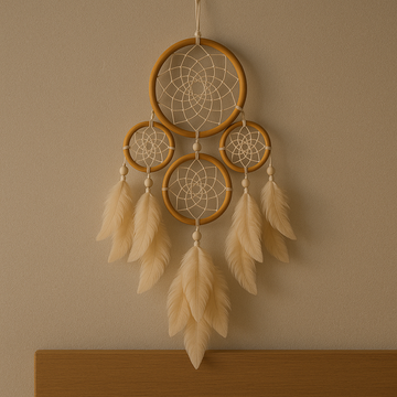 Zavěšený nad lůžkem se lapač snů stává tichým strážcem. Zachytává neklidné sny a myšlenky, aby váš spánek zůstal lehký a ničím nerušený. Jeho síla spočívá v klidu, který nenápadně přináší.